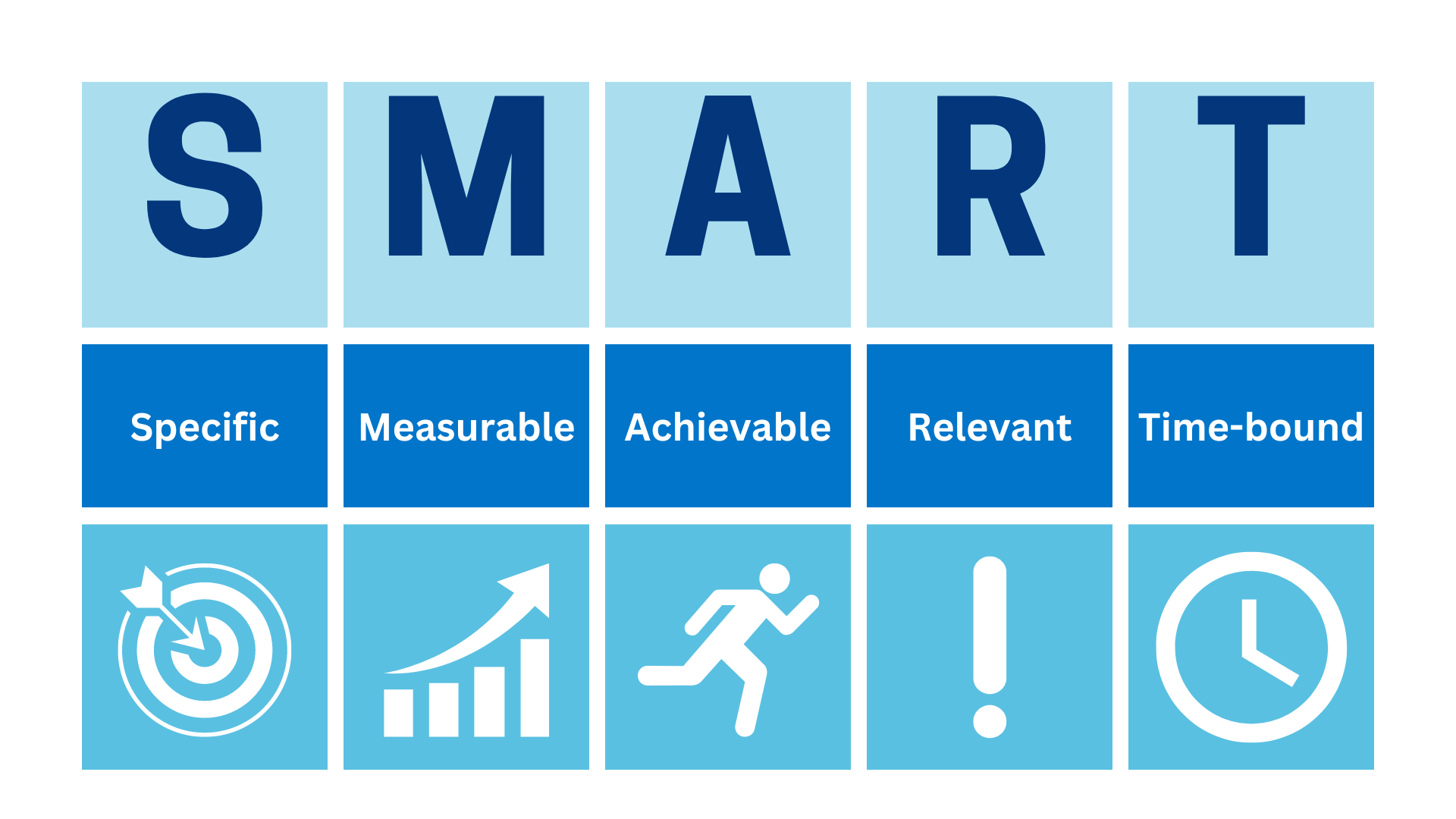 SMART is the acronym for a group of criteria to define goals in an optimal way. The letters stand for Specific, Measurable, Achievable, Relevant and Time-bound. Following these concepts when defining your goals will help you reach them.